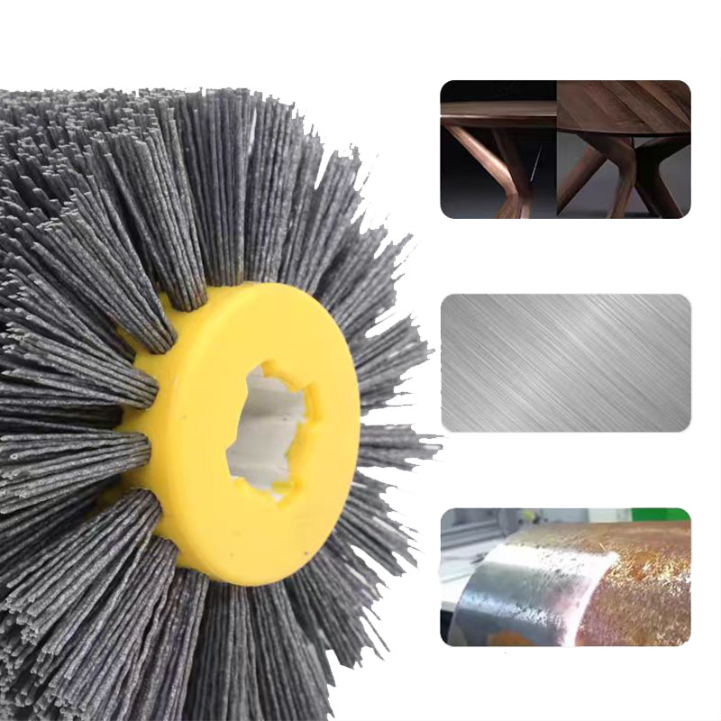 This abrasive wire drawing wheel brush is made of high-density silicon carbide abrasive wire, which is high strength, high melting point, strong chemical and good wear . It can deal with the processing needs of different surfaces.